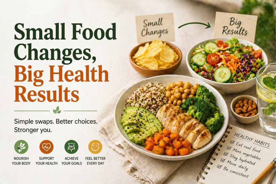 Introduction Many people believe that improving health requires a dramatic reset—strict dieting, expensive supplements, or completely changing the way they eat overnight. In reality, lasting health improvements are usually built differently. They come from small, practical food choices repeated consistently over time. Replacing one processed snack with fruit, adding vegetables to lunch, improving breakfast quality, or […]