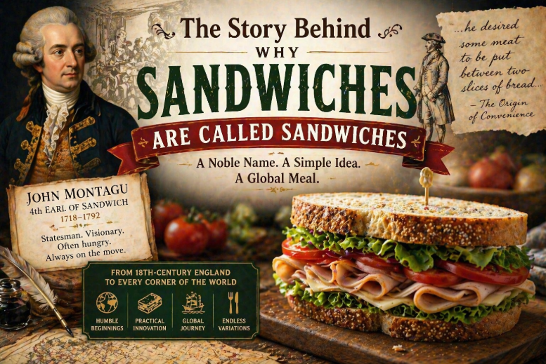 The word “sandwich” is linked to an 18th-century English aristocrat whose title became permanently attached to one of the world’s most popular meals. Over time, what began as a convenient way to eat became a global food category.